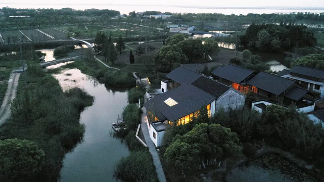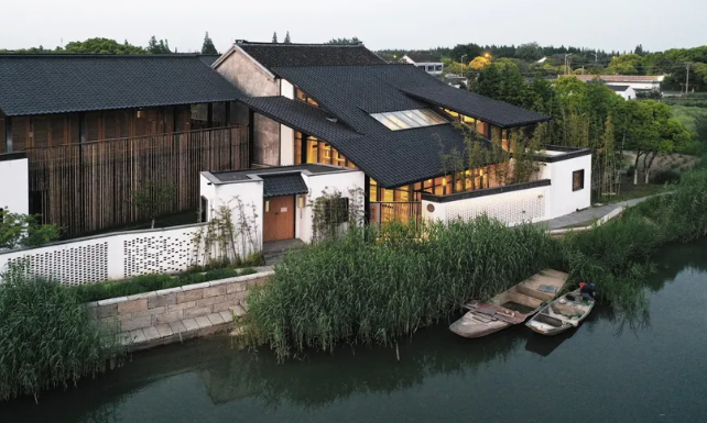 这座农房位于江苏省昆山市巴城镇西浜村,在2016年落成的西浜村昆曲学社东边,便是以微介入方式恢复乡村文化,乡愁乡貌的又一次重要探索。当年学社的建成,搭建了村民了解和熟知本土文化朝夕相处的文化媒介,小村中昆曲萦绕,来者驻步停留,研习玉山雅集。小建筑也和周边村民的生活紧密结合,互惠互助。